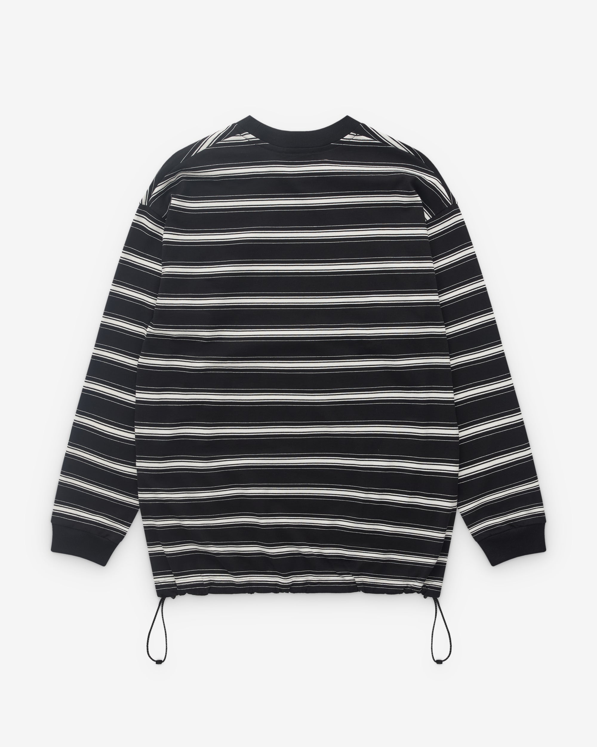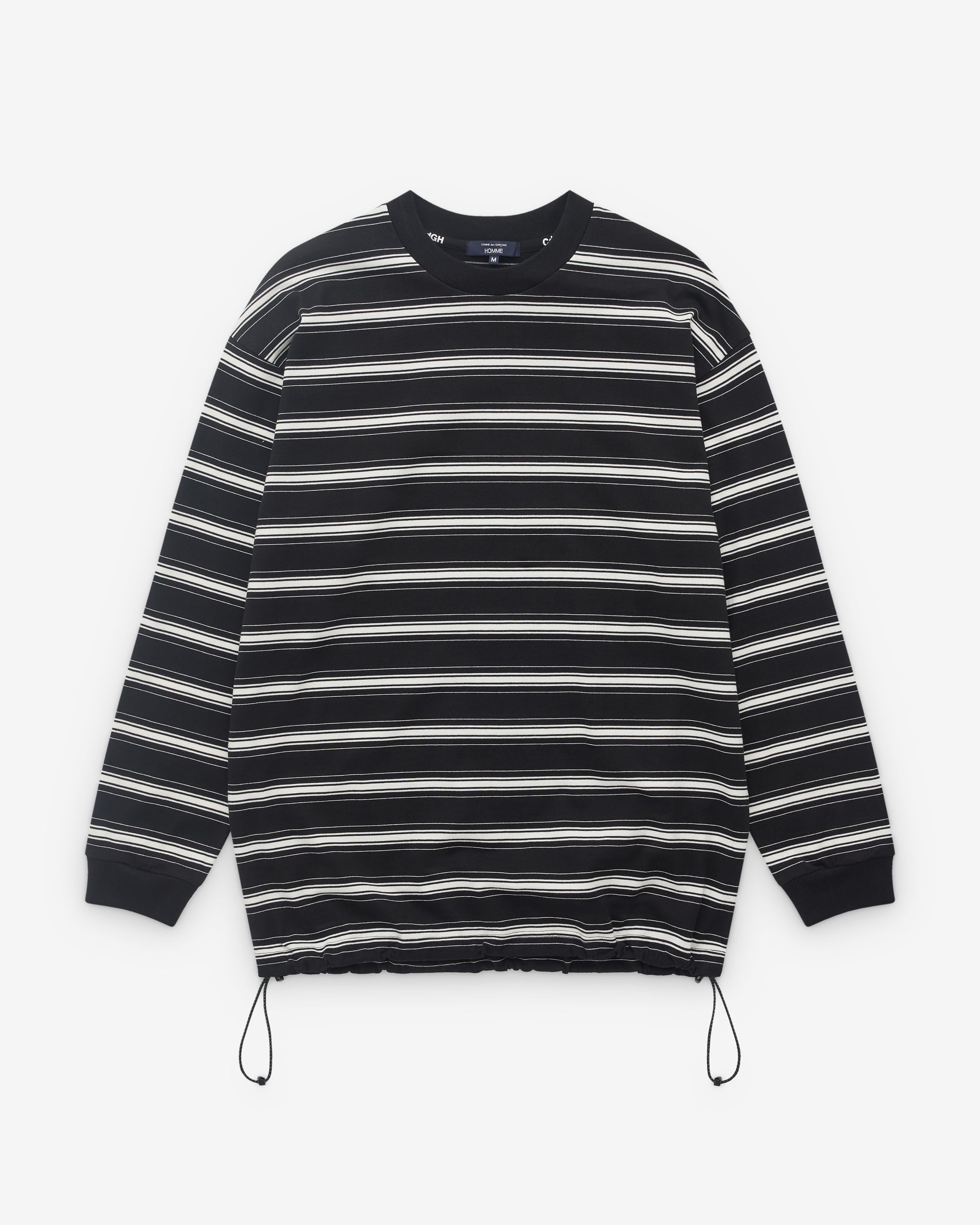 Round neckDropped shouldersDrawcord at hemRib knit trimsRelaxed fit