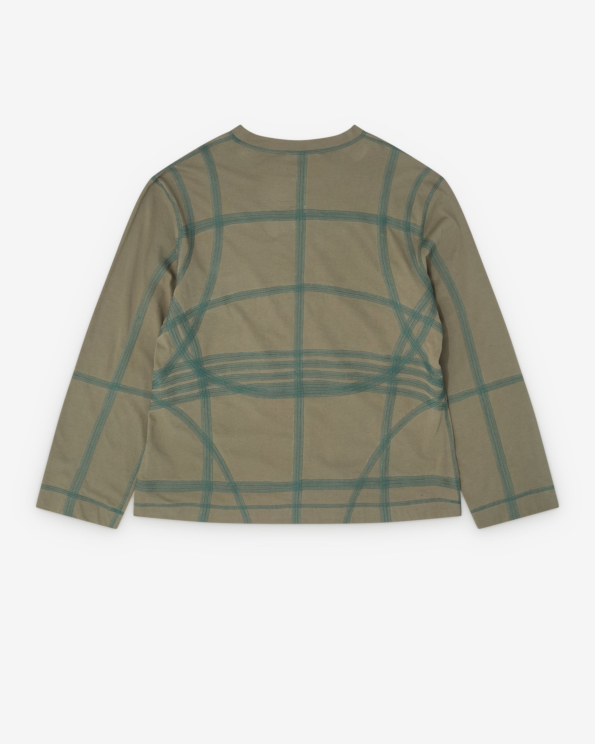 Rounded crew necklineLong sleevesTonal flatlock stitch detailingStraight hem