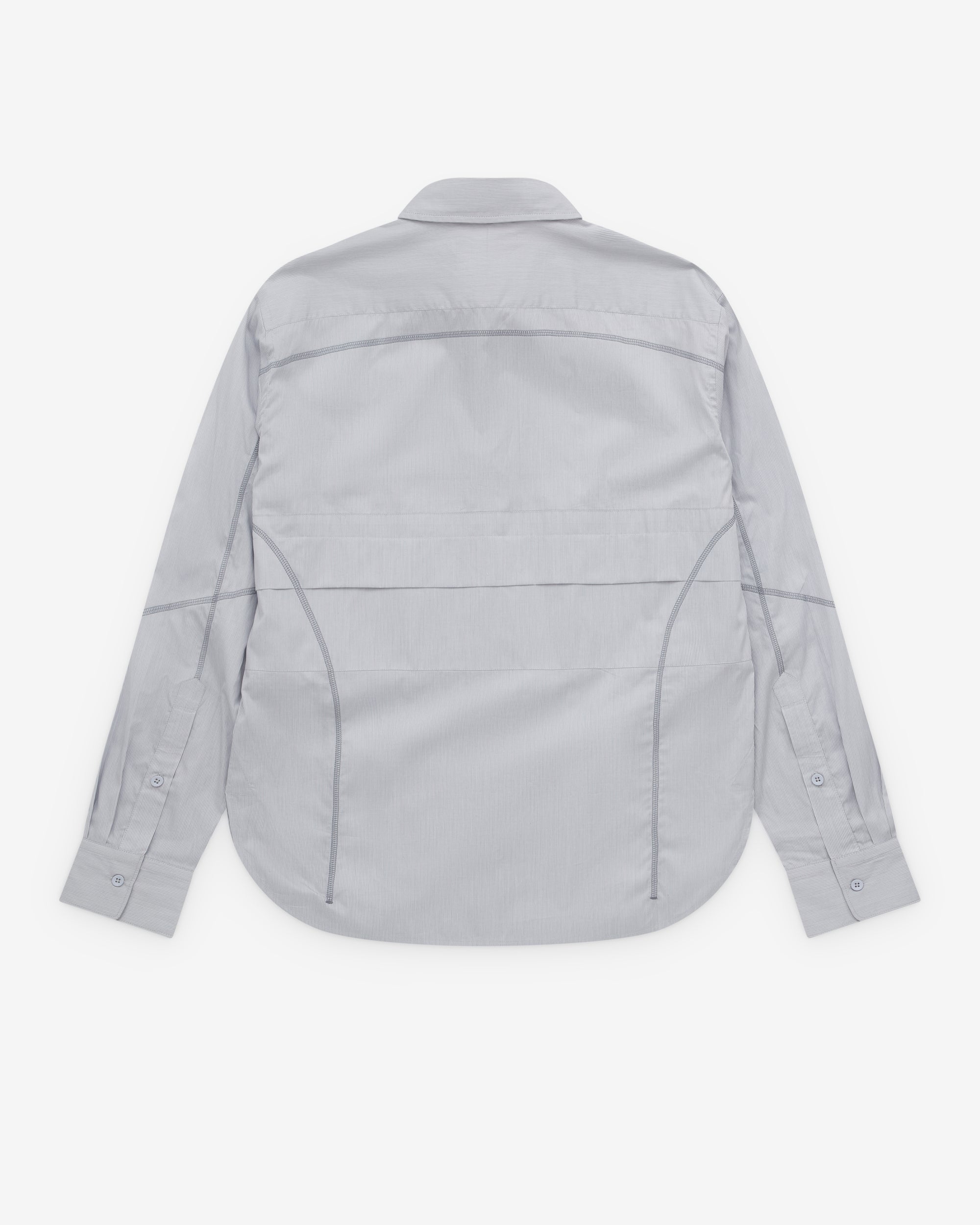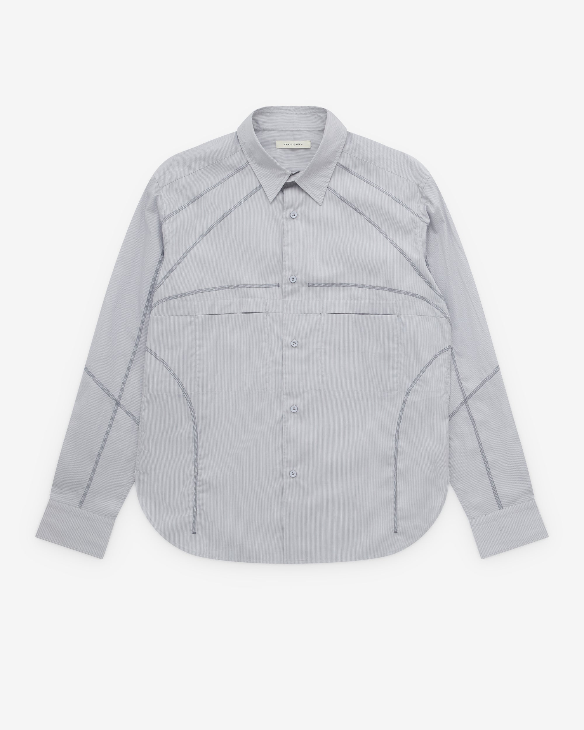 Point collarFront button closurePiping detail throughoutRounded hemButton close cuffs