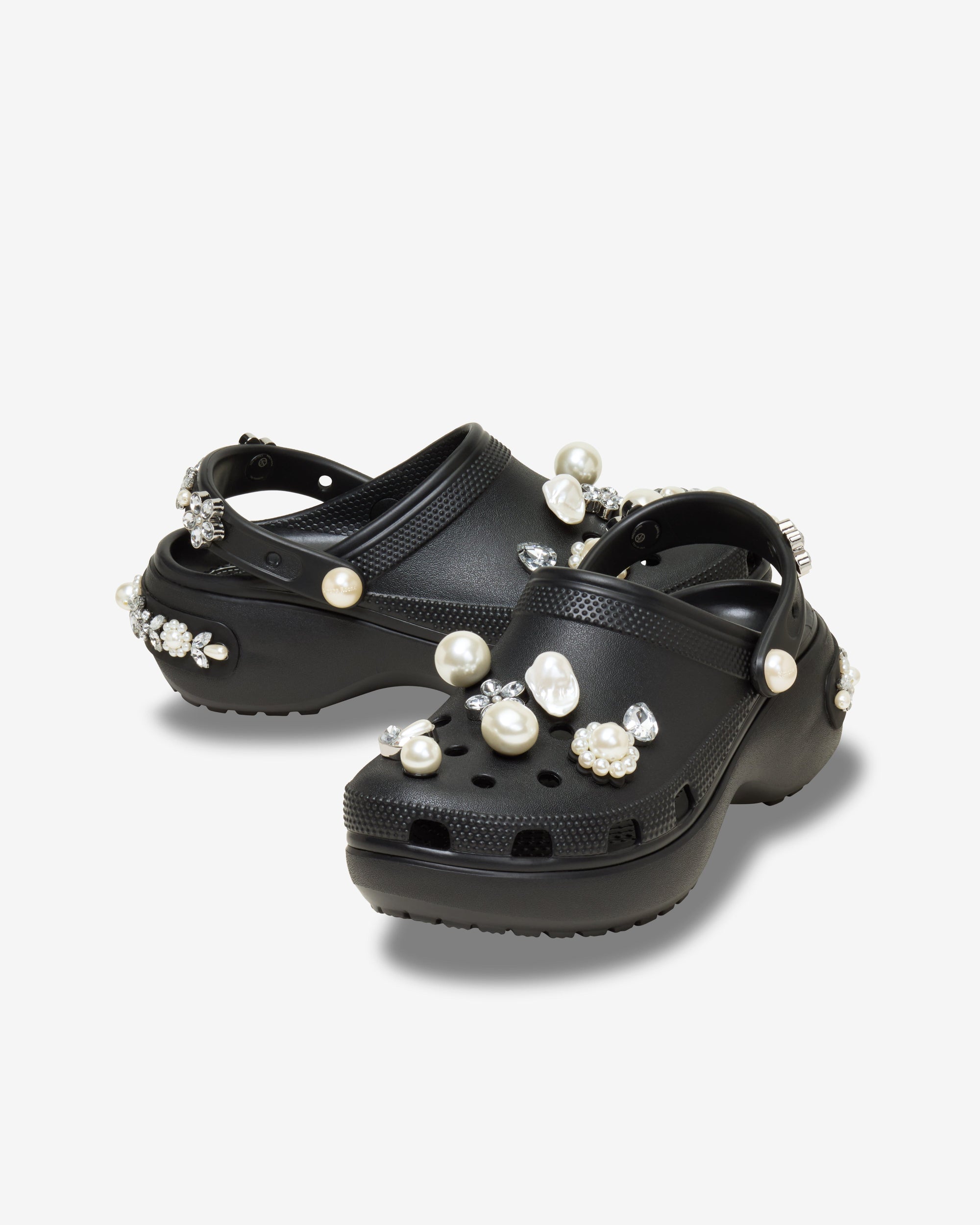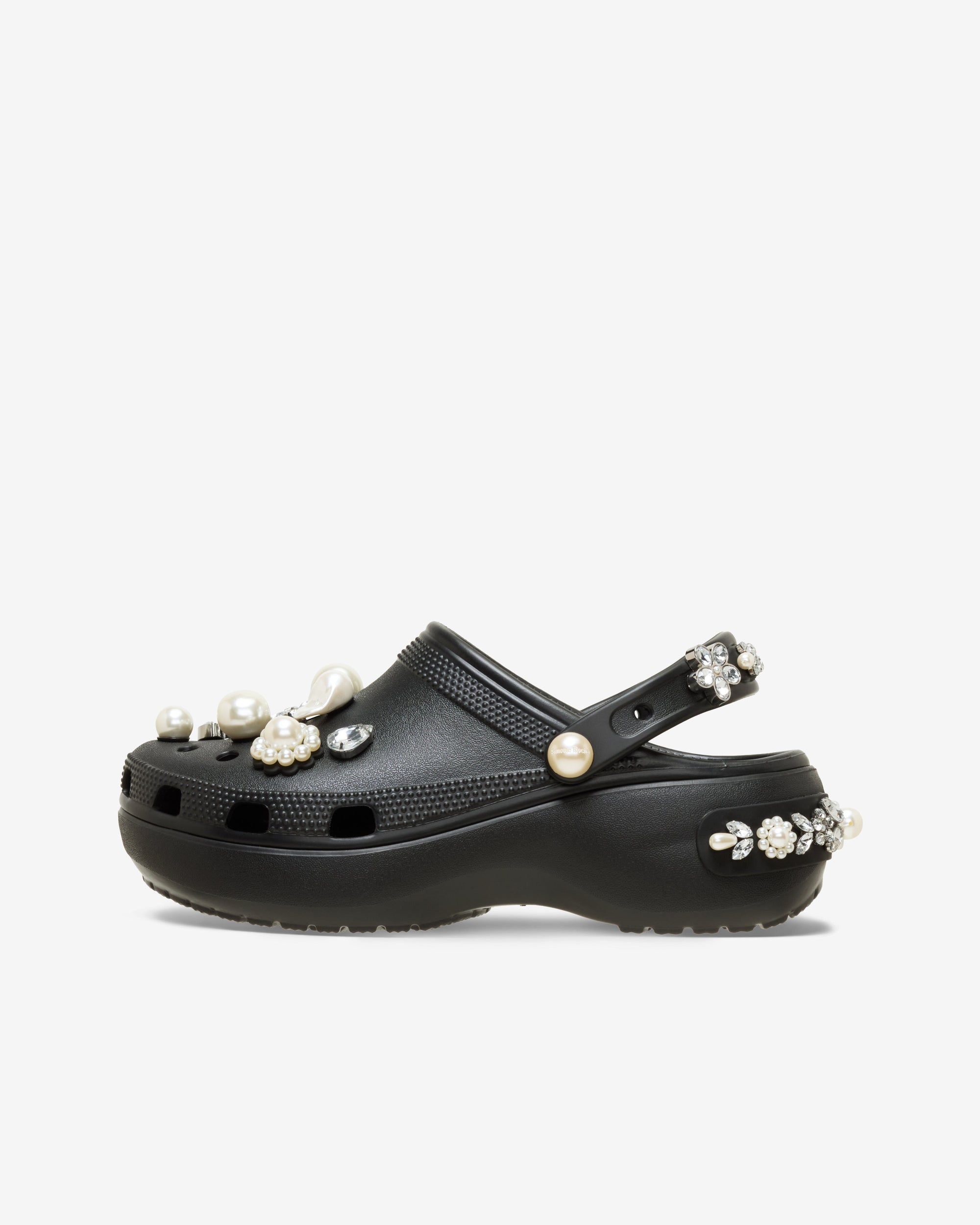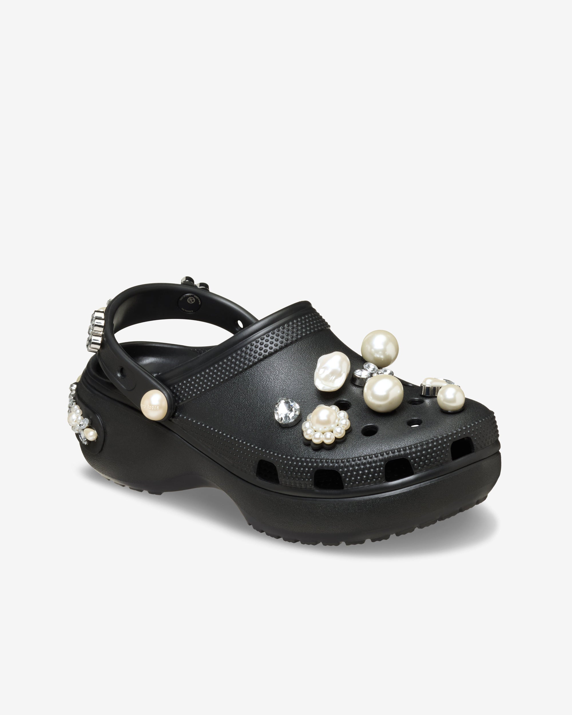 The Platform Clog is an elegant adaptation of an everyday classic. The clog is supported by a cushioned footbed and contoured outsole for comfort, while elevated by a platform sole for style. Adorned with Simone Rocha’s signature embellishments, this stunning style shines with dazzling gemstones and drop pearl Jibbitz™ charms.