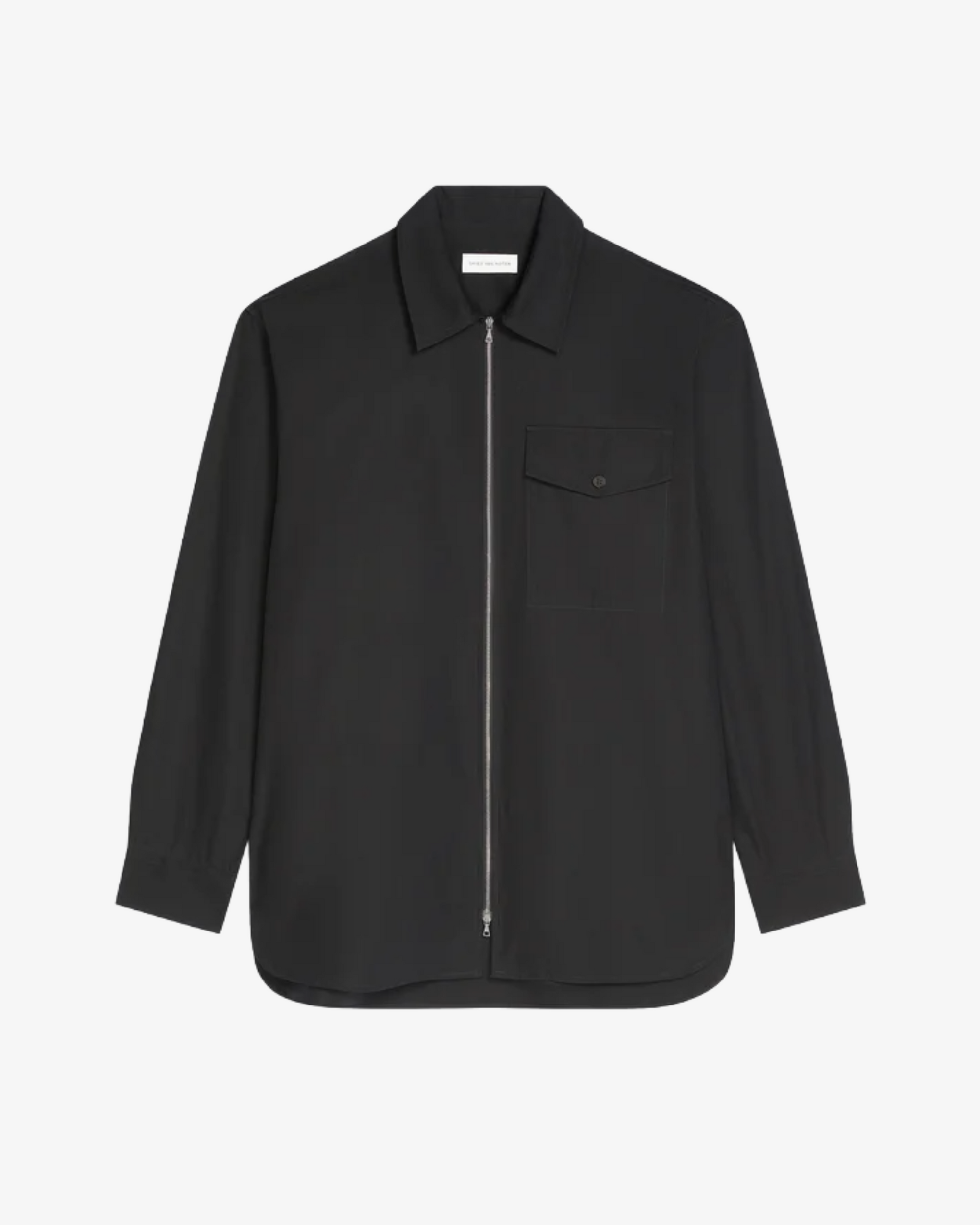 Loose fitDropped shoulder seamChest patch pocketFront two-way zip closure100% Cotton Poplin