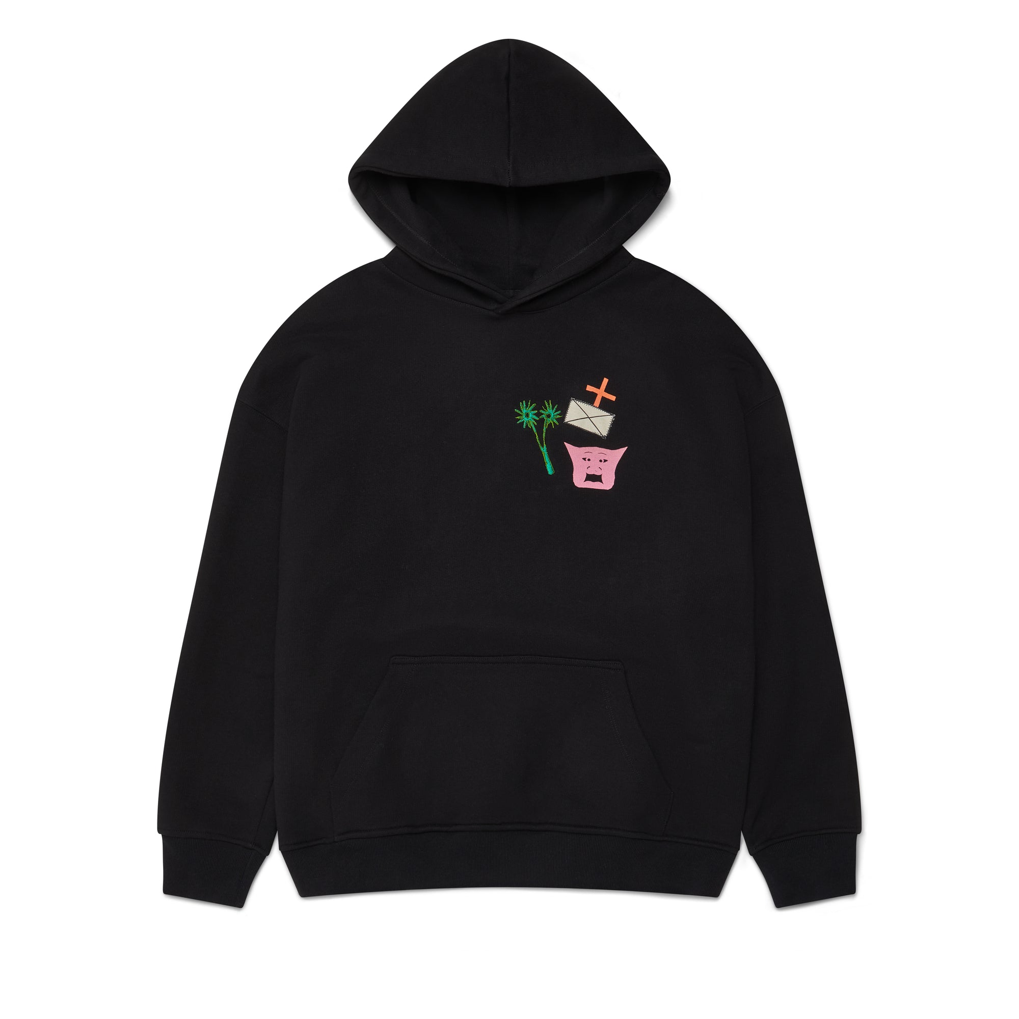 Printed and embroidered artwork on chest and backKangaroo pocketRibbed cuffs and waist