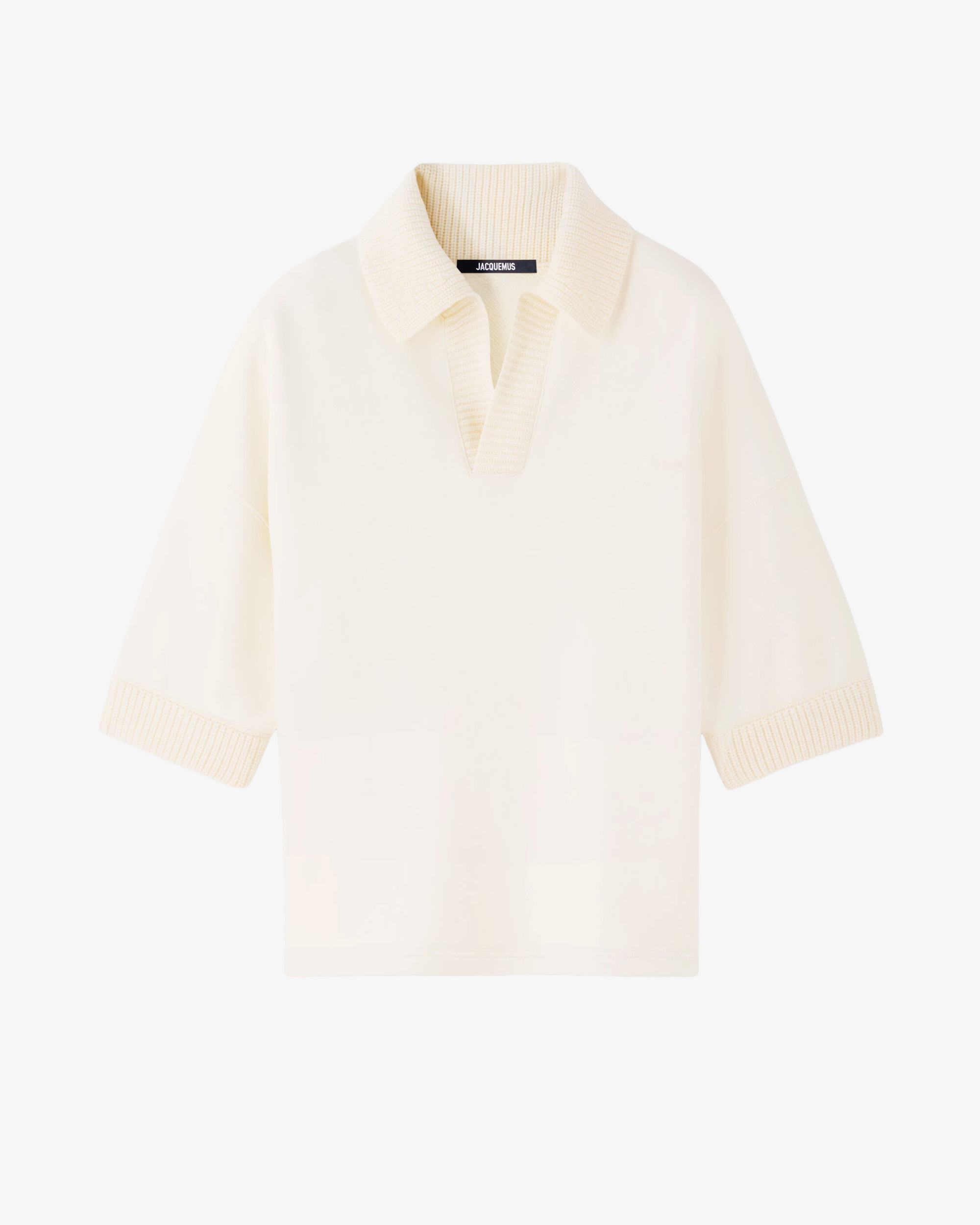 - Relaxed fit - Two-tone merino fleece - Ribbed polo collar and cuffs - Buttonless - Embroidered "J" on the the chest - 3/4 sleeves 99% Cotton 1% Elastane Trims: 100% Merino Wool Made in Portugal