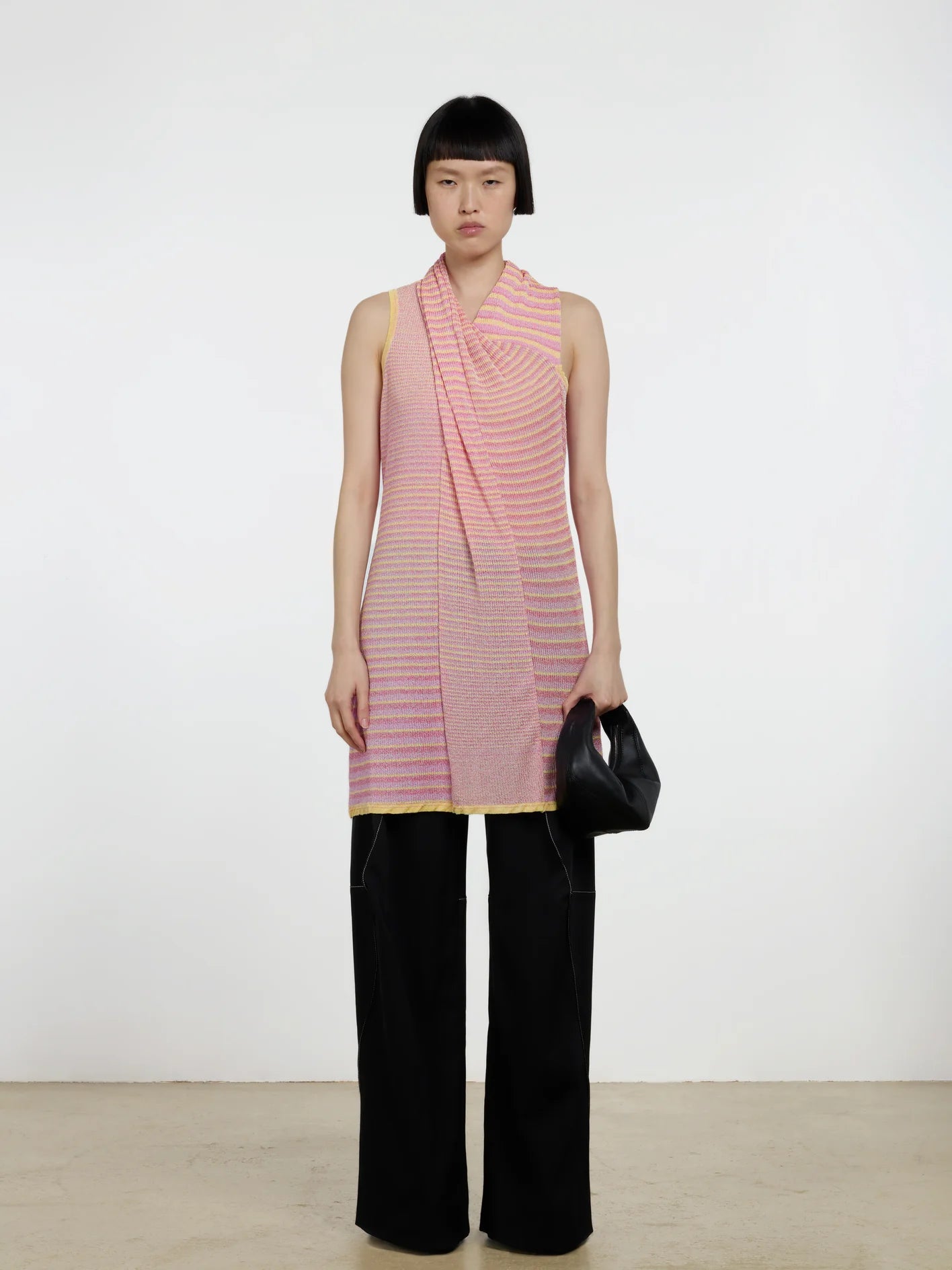 SleevelessTwisted necklineAsymmetric stripeRib knit trims