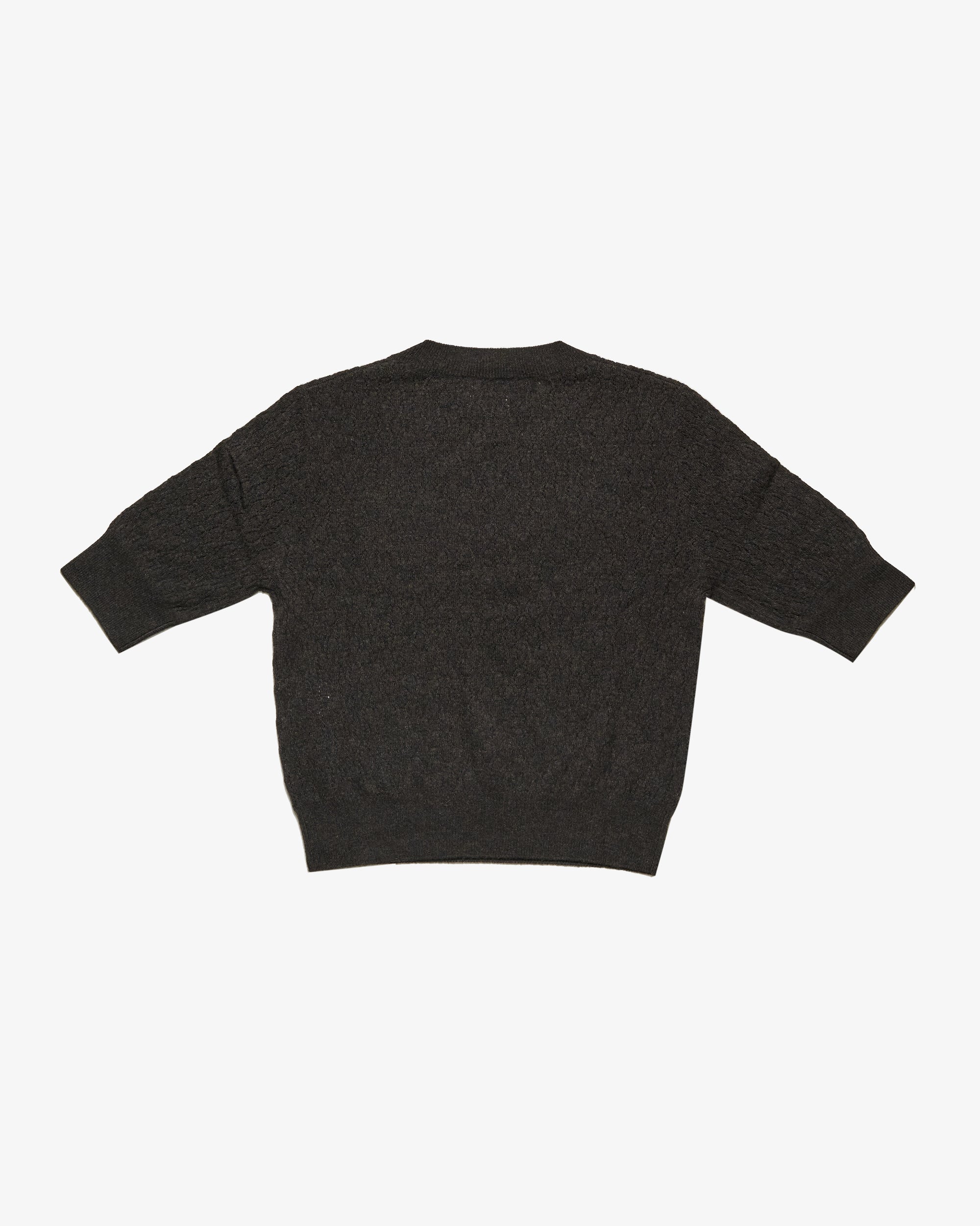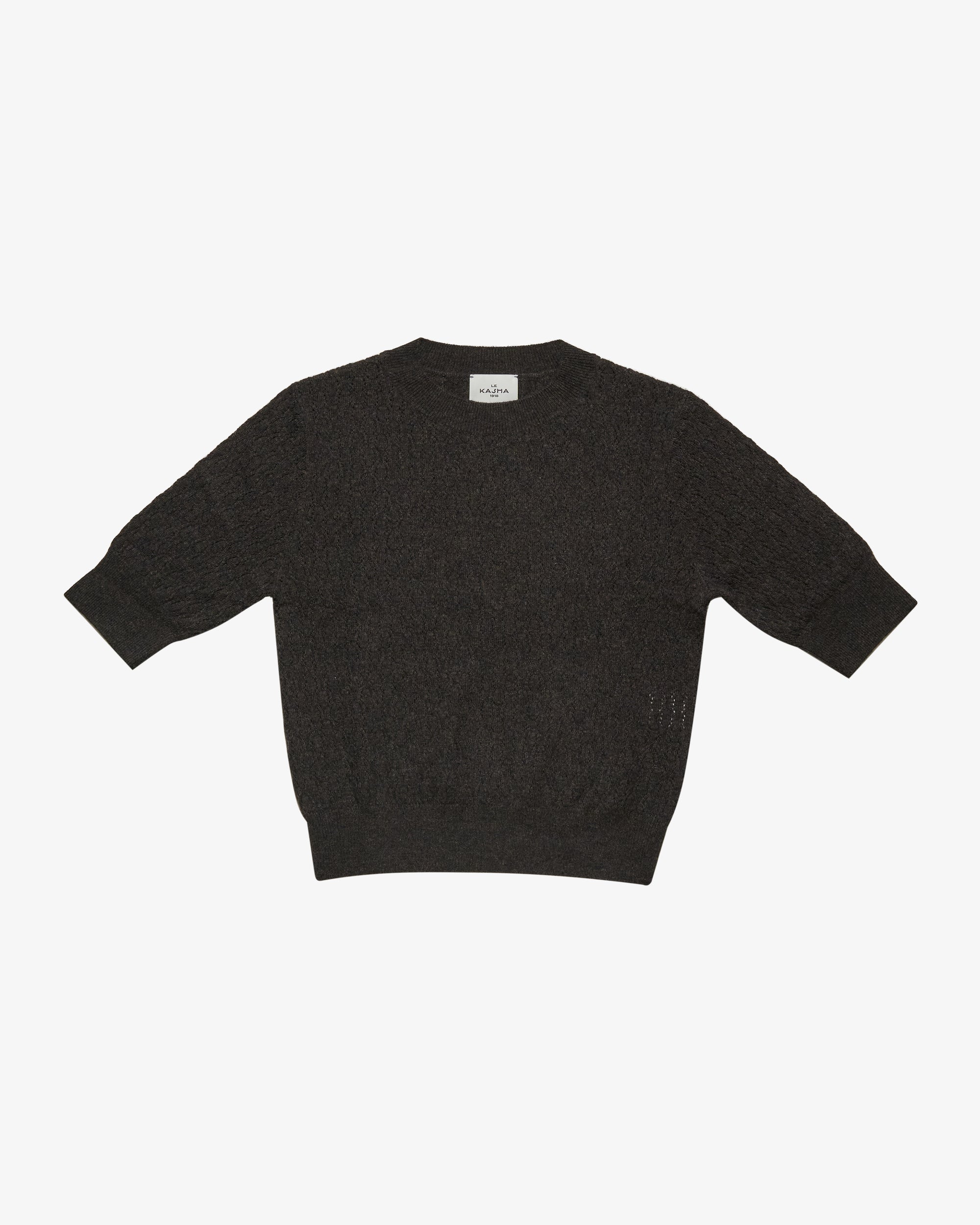 Lightweight knit cashmere knitted with pointelle texture. It has short sleeves, a crew neck and a fitted silhouette.