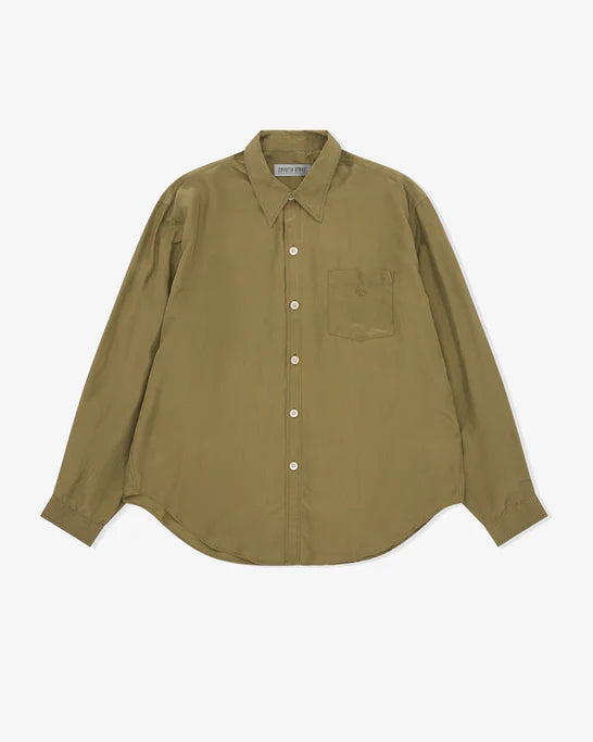 Point collarMother of Pearl button fasteningCurved hemButton cuffsChest pocket with logo embroideryRelaxed fit