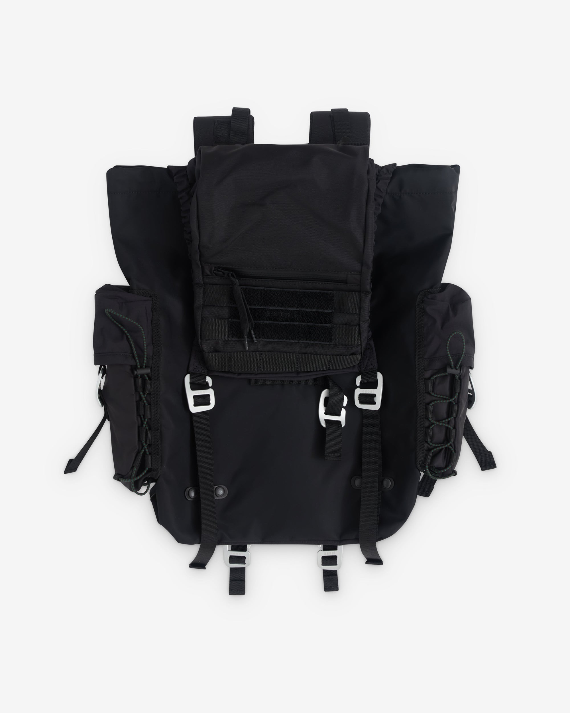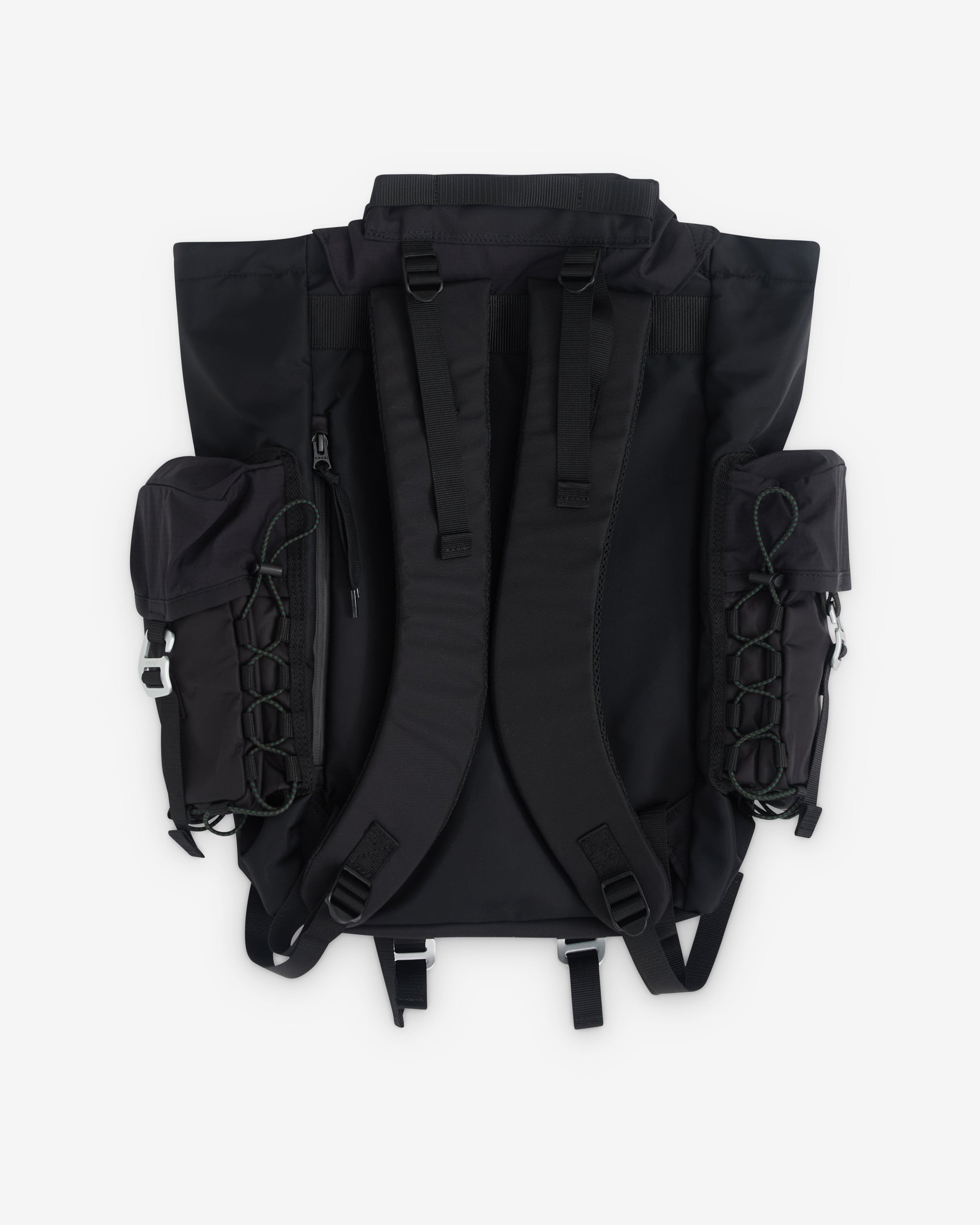 Top carry handleTop flap closureMetal buckle hardwareAdjustable shoulder strapsExterior zip pocketsTwo side pocketsInterior pocket45cm x 30cm x 15cm