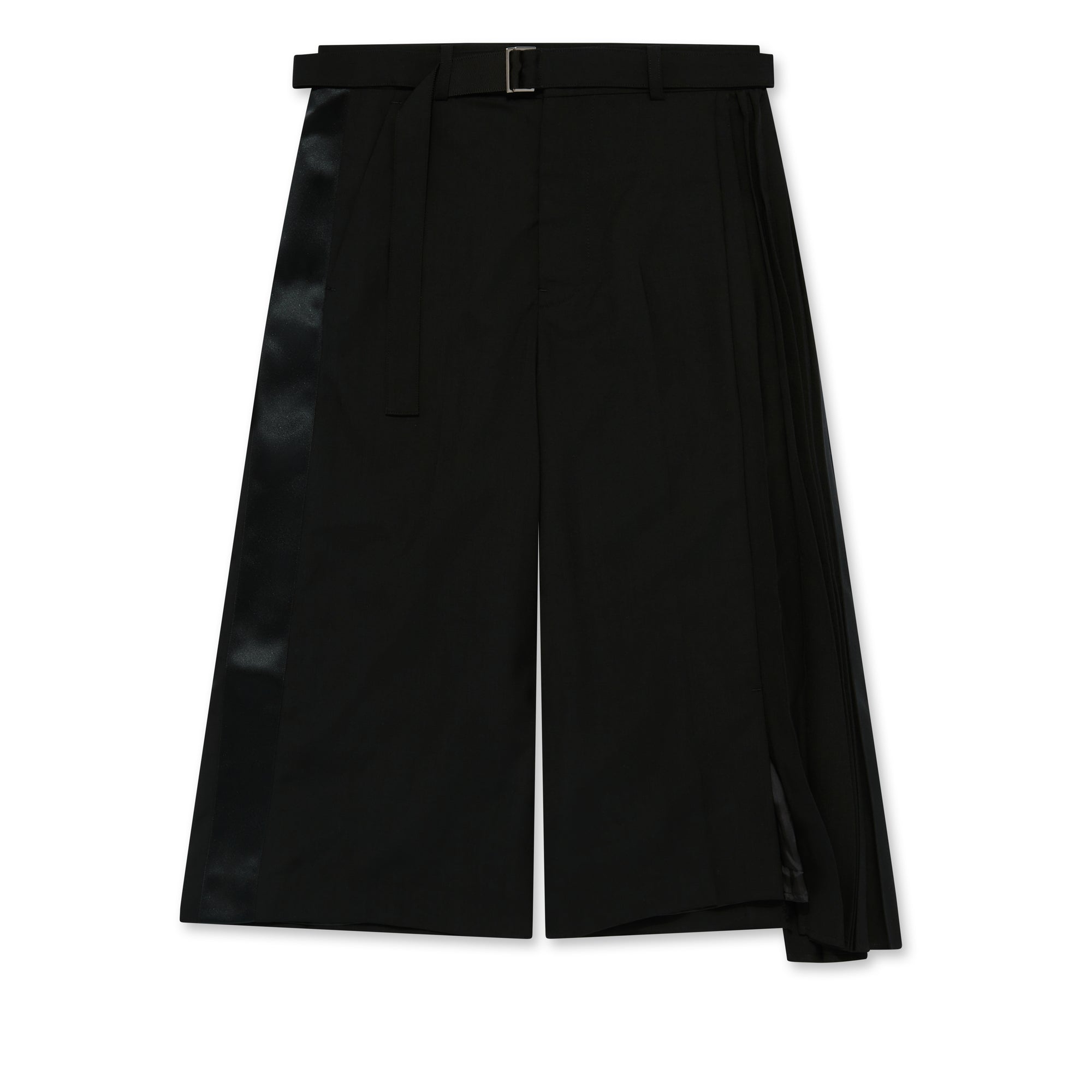 Wide fitAdjustable belted waistPleated side panelSatin side panelBack pocket