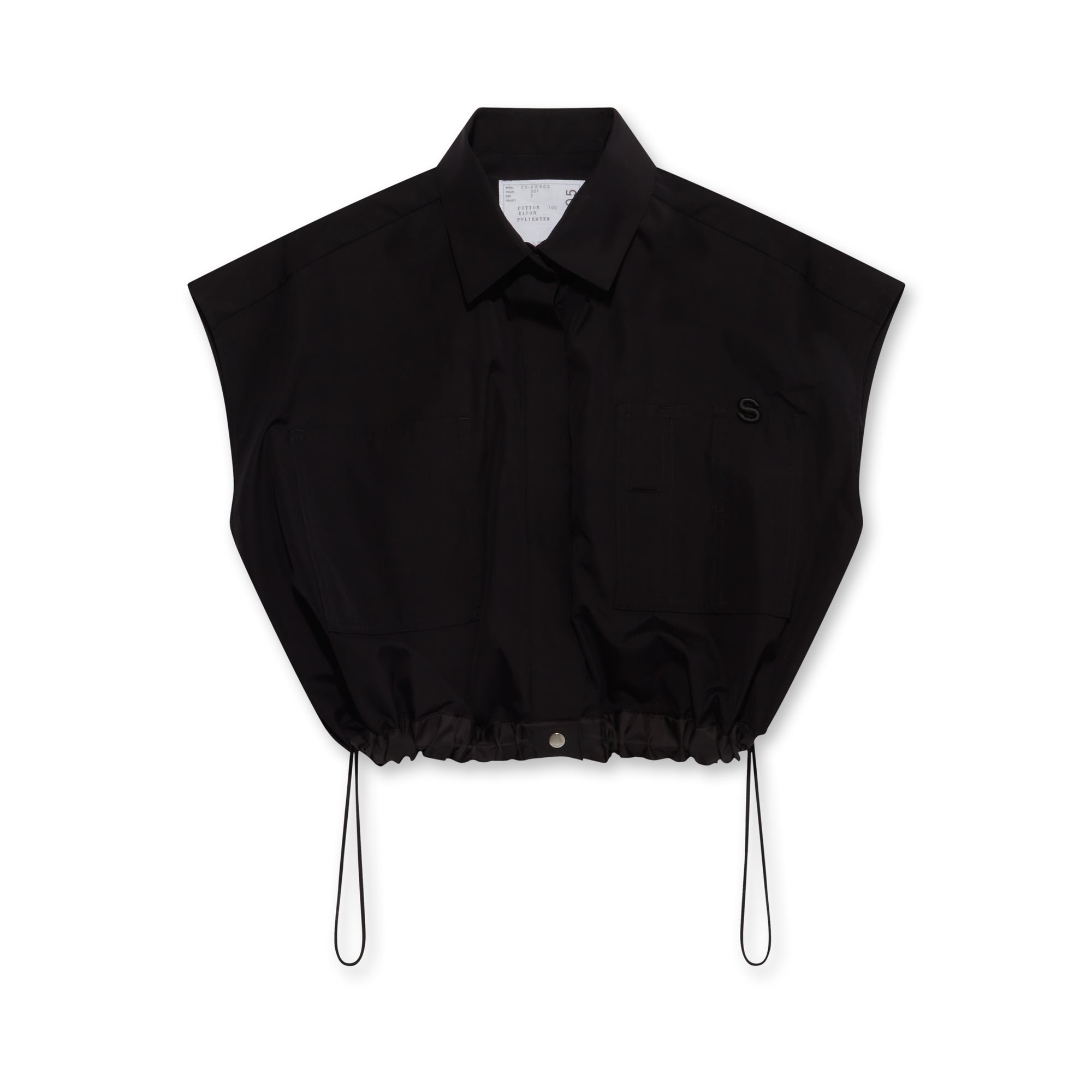 sacaiWomen's shirtiscrafted from the qualitytextiles of Thomas Mason. The sleeveless design is characterised by a cropped fit with a utilitarian style nylon drawstring waist. The shirt is finished with a split collar and two patch pockets to the chest with a logo embroidered 'S'.