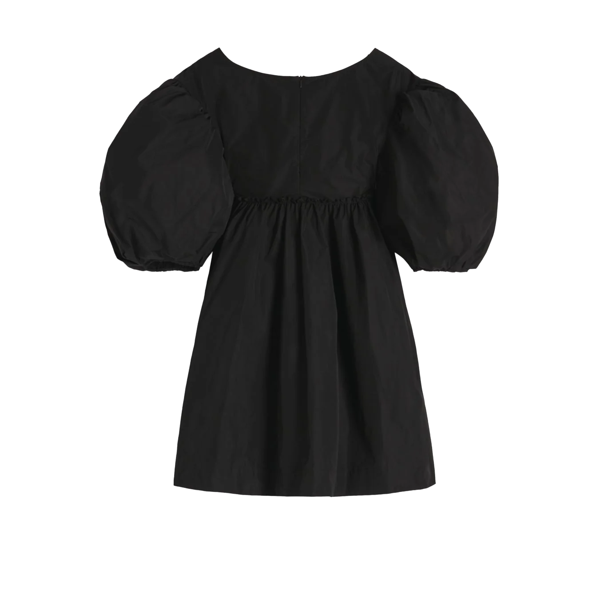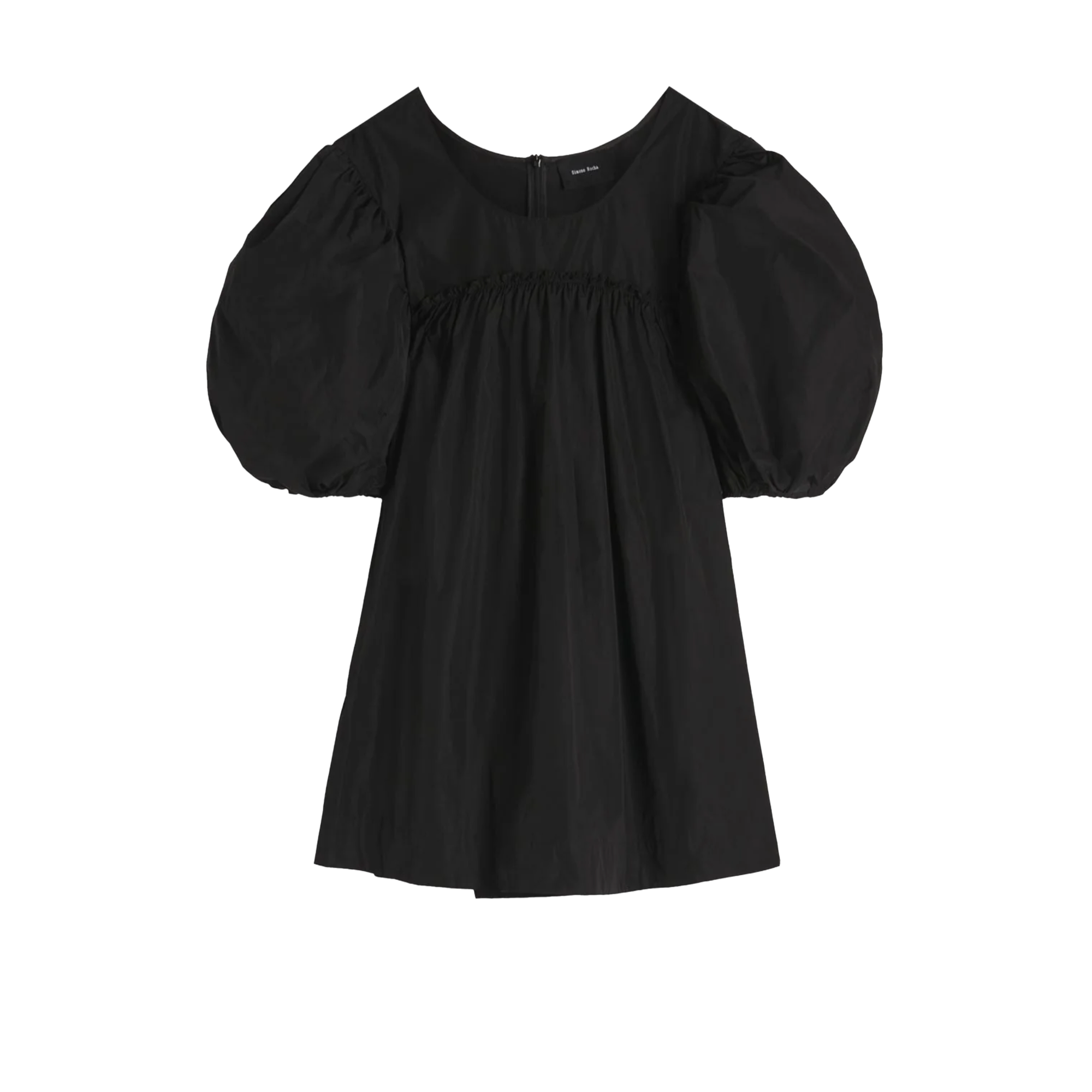 A signature style from Simone Rocha, the scoop neck puff sleeve dress. With the signature oversized puff sleeve. Featuring a deep scoop neck with a fitted bodice, a ruffled empire line detail and a gathered, "bubble" hem. Mini length. Zip closure at the back.