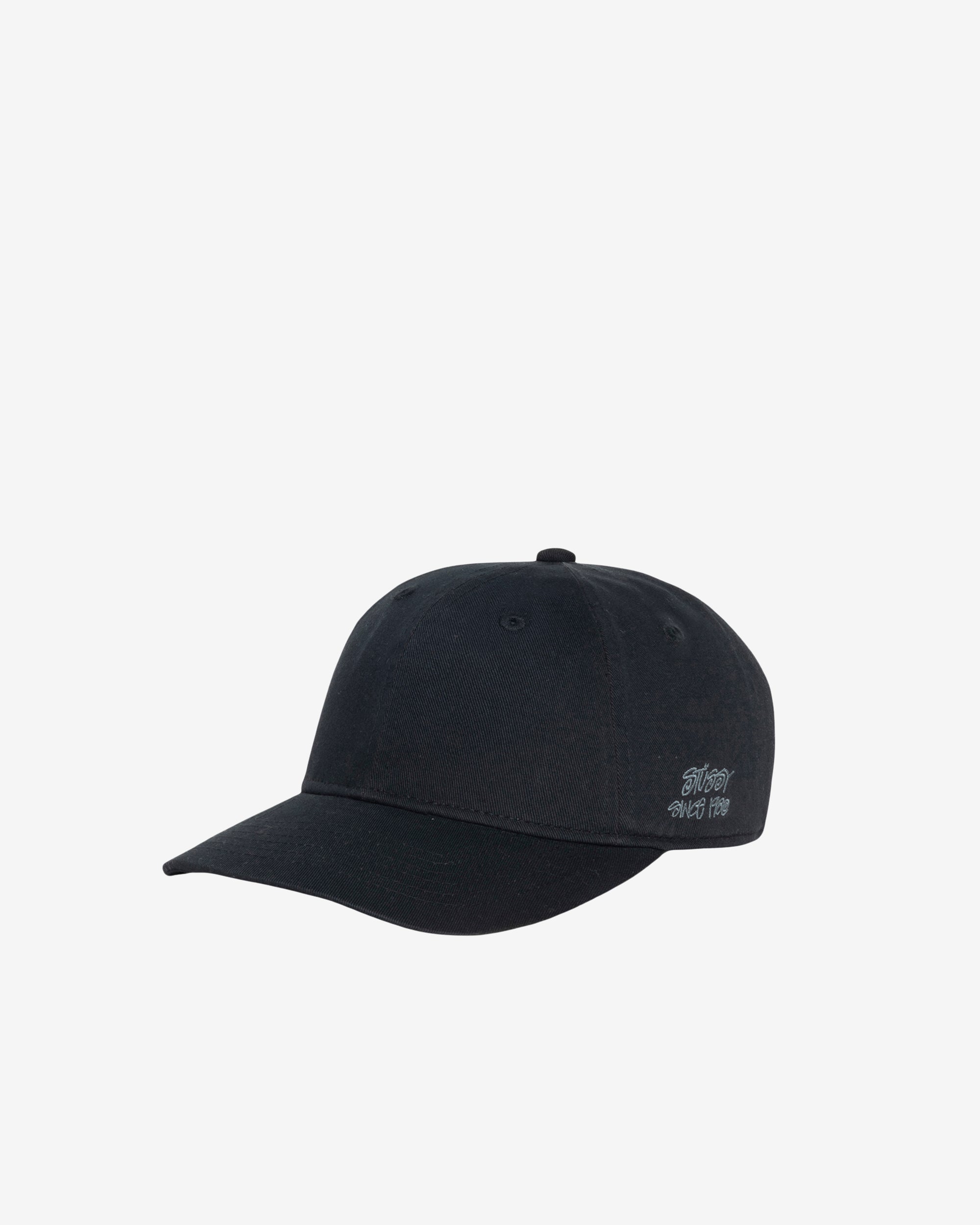 Low profile five panel cap in cotton twillStüssy logo embroidery at sideUnstructured crownPrecurved brimMesh panelsStrapback closure with metal triglideCotton twill sweatband