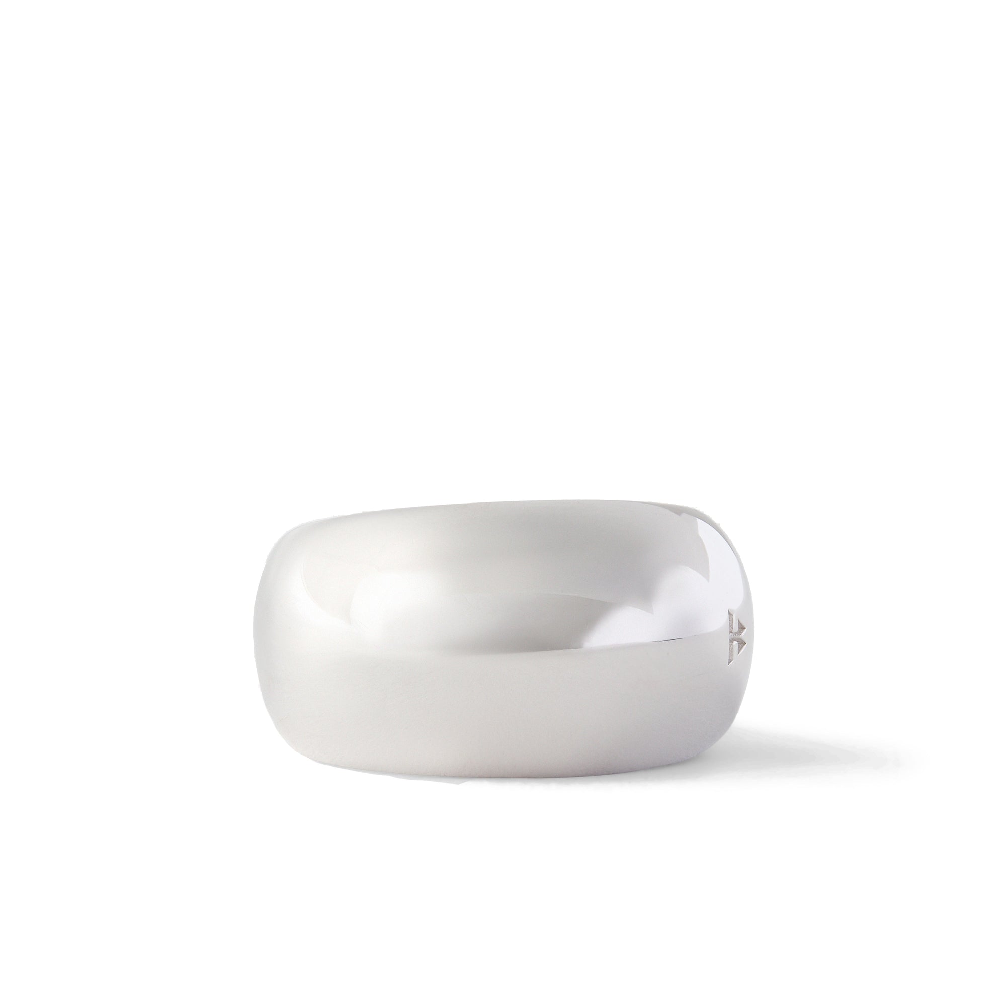 The Ice Ring is a chunky band ring inspired by the way ice cubes tend to melt into a more curved and shiny shape.